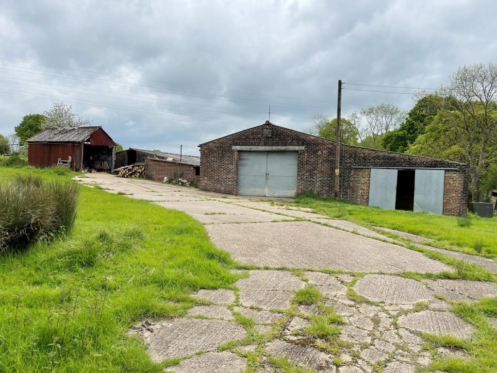 Three brick built agricultural buildings suitable for livestock and storage and a corrugated barn suitable for vehicle storage. Concrete driveway for access plus land extending to 3.5 hectares (8.8 acres) for grazing and pasture. It is of irregular shape and is part sloping with an electricity pylon and partly bordered by mature trees.