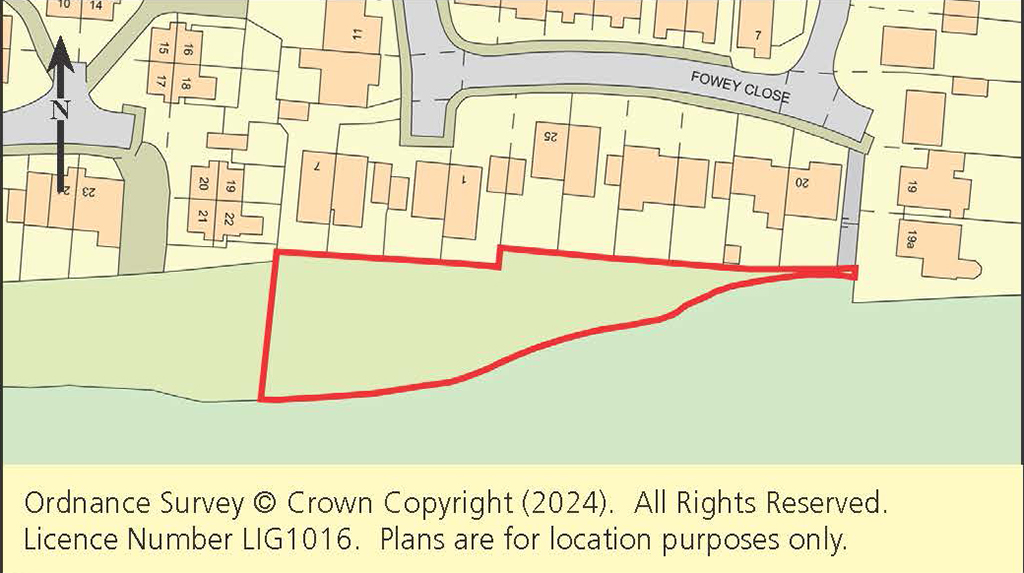 Two freehold parcels of land, the first parcel extends to 0.12 hectares (0.32 acres) situated behind the residential properties in the cul-de-sac known as Fowey Close.