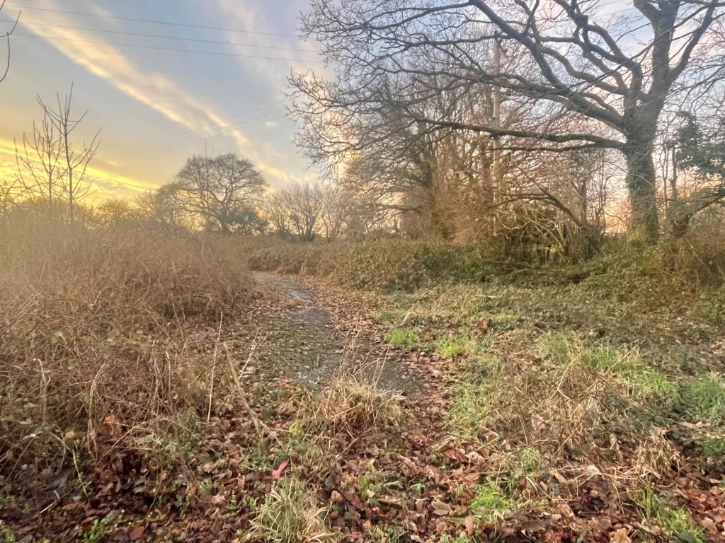 A freehold area of overgrown land with roadway which adjoins a residential development within the village of Treburley. Any future use of the Lot would be subject to all necessary consents being obtainable.